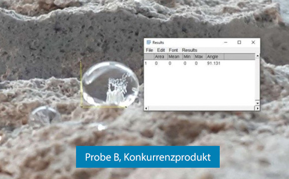 Als Vergleichsobjekte wurden gängige Kalksandsteine aus dem Baustoffhandel und Klinker im Reichsformat aus einem Abrissobjekt verwendet. Die Proben wurden entsprechend im Trockenofen vorbereitet, um reproduzierbare Laborbedingungen herzustellen. Anschließend wurden die Injektionsmittel in die Proben injiziert und mehrere Wochen an der Luft getrocknet. Nun wurden die wasserabweisenden Eigenschaften der behandelten Proben untersucht. Dazu wurden die Steine aufgesägt und mit einer Pipette Wassertropfen auf die Proben getropft. Beide Proben zeigten deutlichen Abperleffekt und waren somit wasserabweisend.