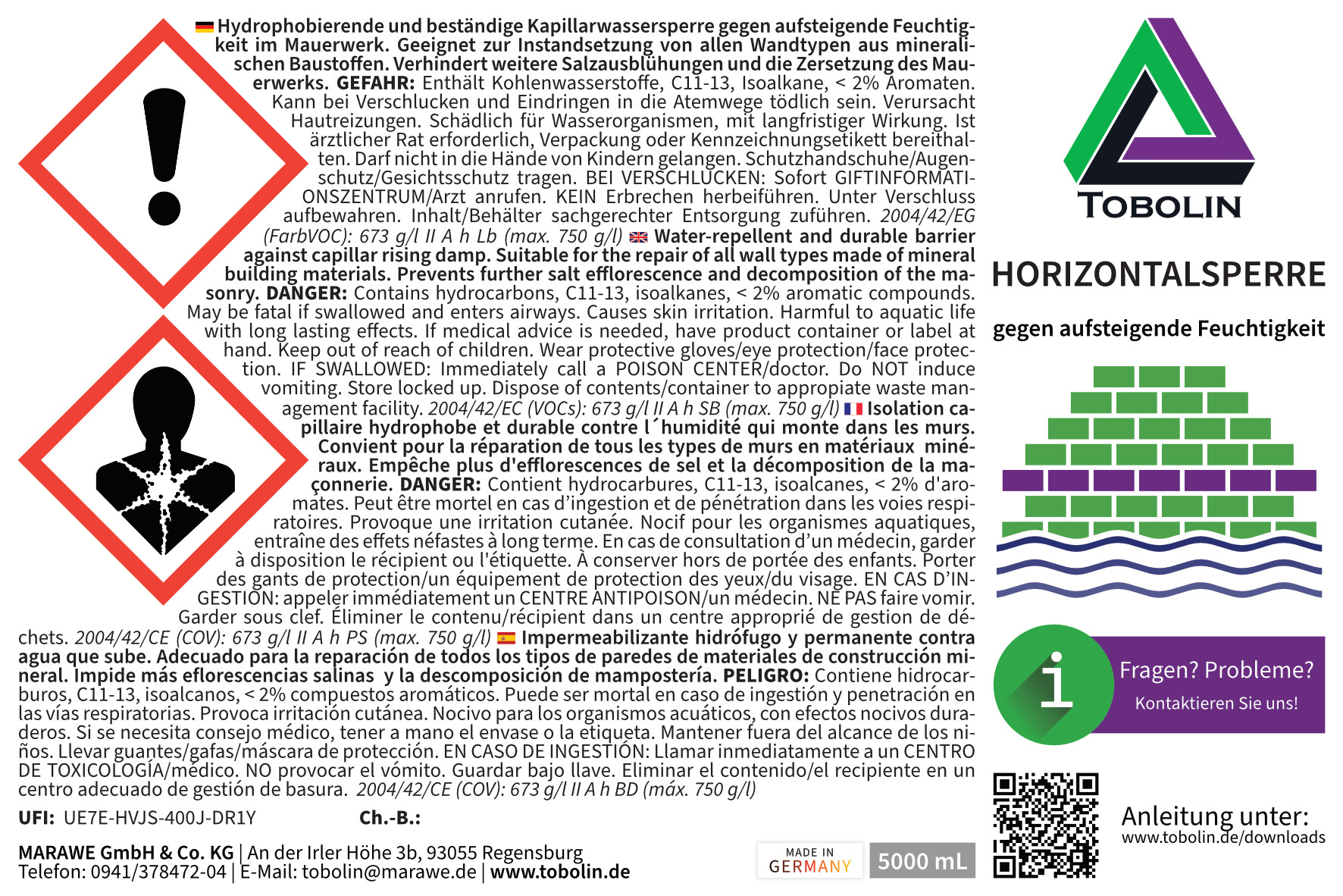 - TOBOLIN HORIZONTALSPERRE bietet einfache Anwendung und schnelle Durchführung mit dem wasserfreien Injektionssystem. Absolut dicht - keine undichten Trichter mehr.