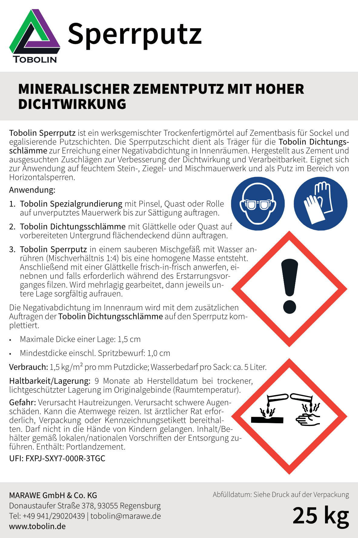 Produktinformationen "TOBOLIN Sperrputz 25 kg"